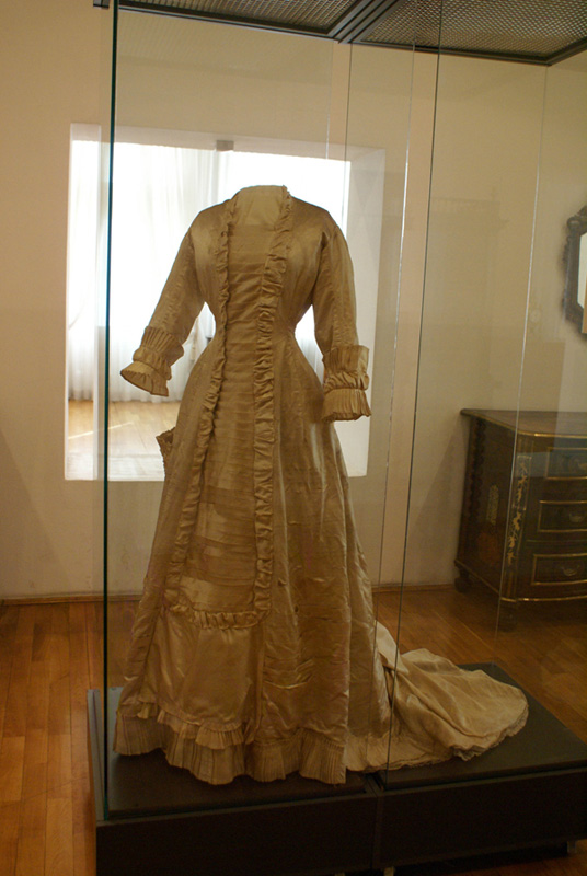 Хаљина је била изложена на изложби „Венчане хаљине у Србији у другој половини XИX и почетком XX века из колекције МПУ“ која је одржана у музеју, у галерији „Инкиостри“, у периоду од 22. септембра до 31. децембра 2011. године.